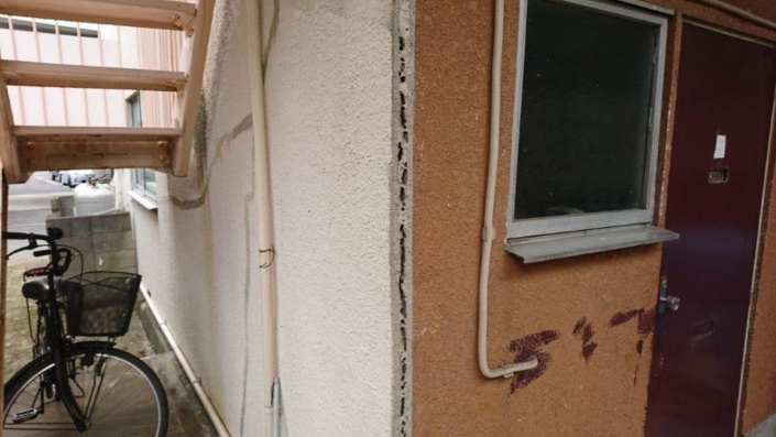 まず、外壁部分ですが数年前に補修した箇所に亀裂が大きく入り、そこからの漏水がありました。様々な要因が考えられますが、可能性として高いのは地震などの揺れと思われます。