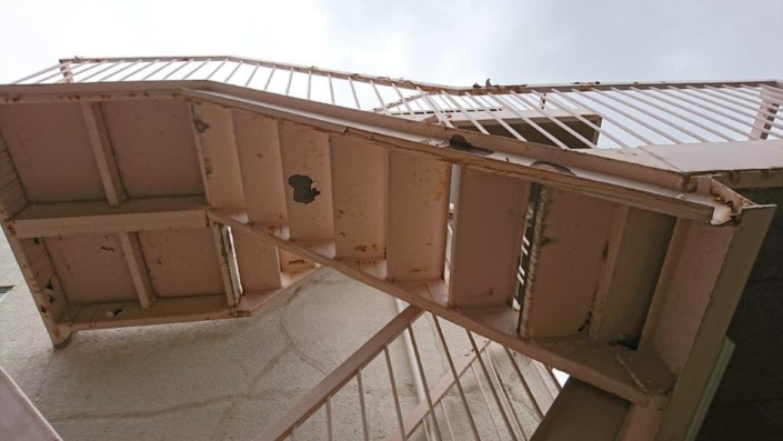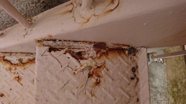 共用階段に関しては錆が多くあり、鉄部の上に塗布してある塗膜が剥がております。