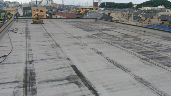 アスファルト防水の押えコンクリート仕上げ施工されているとの事だったんですが、築年数34年を超え雨漏りを心配しての診断です。