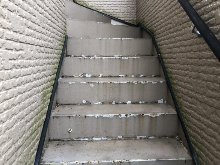 また側溝・幅木は既存の防水層が劣化しており塗膜剥離を引き起こしてました。階段の踏み面も劣化により雨が降った日などは滑りやすい状況と思われます。