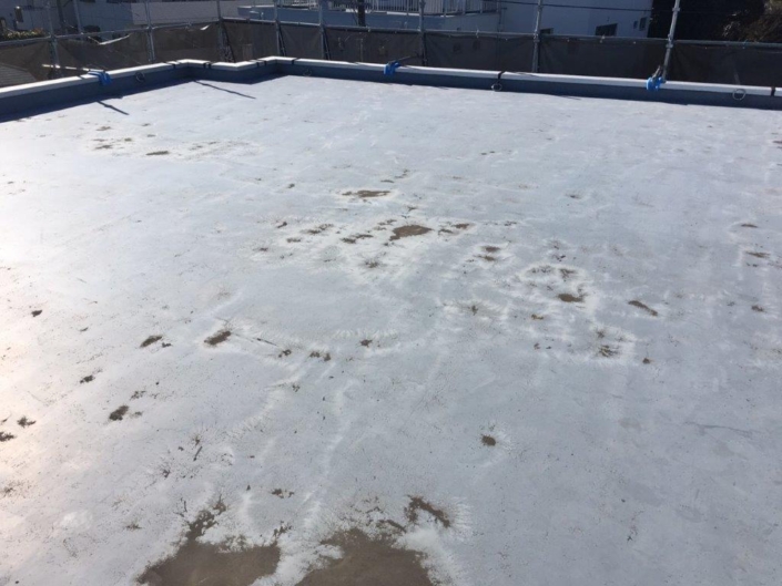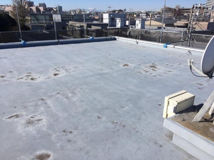 既存の防水層が経年の劣化により剥がれてしまっており、コンクリートが剥き出しの状態になってました。
