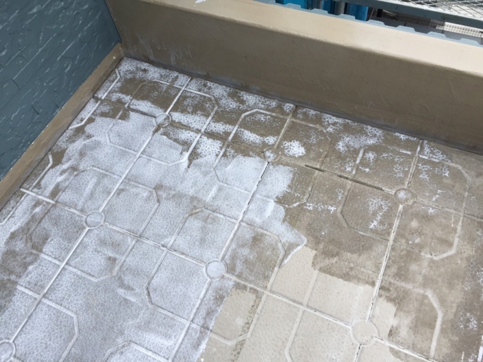 【前回の様子】屋上防水に伴う高圧洗浄・下地処理|茨城県守谷市のM様邸にて防水工事中