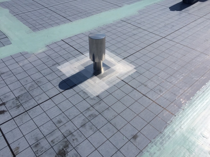 屋上防水に伴う通気緩衝マット張り付け・脱気筒の設置