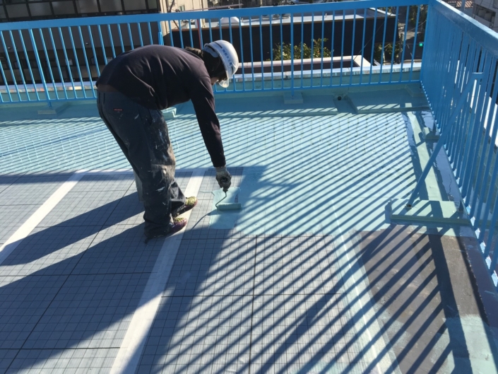 屋上防水に伴う1層目のウレタン塗布