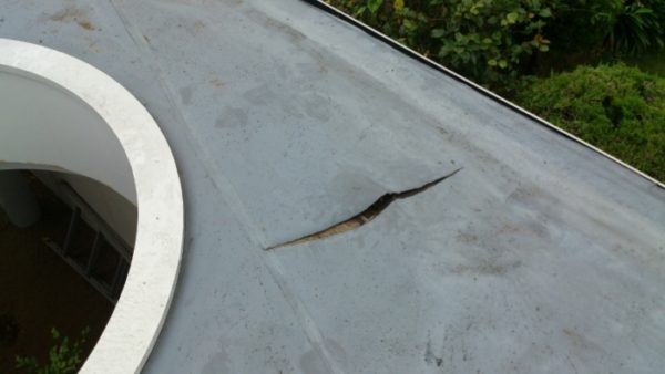 屋上に上がって防水層の状況をチェックしてみると、旧防水層に破れ・剥がれなど広範囲にわたり劣化が見受けられました。