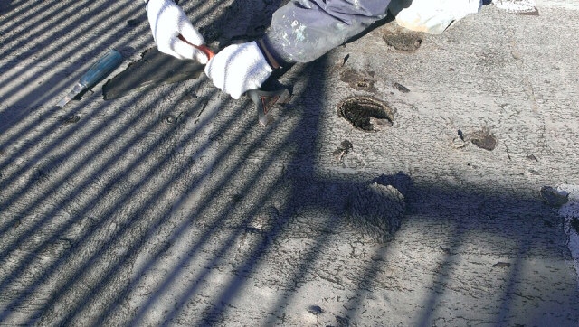 既存の下地の膨れが多いので、下地処理が必要になってきます!