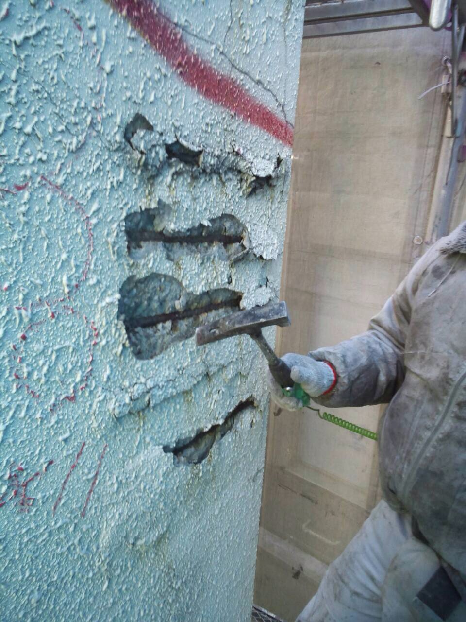 そして【脆弱なコンクリート】を撤去して、鉄筋を出していきます。