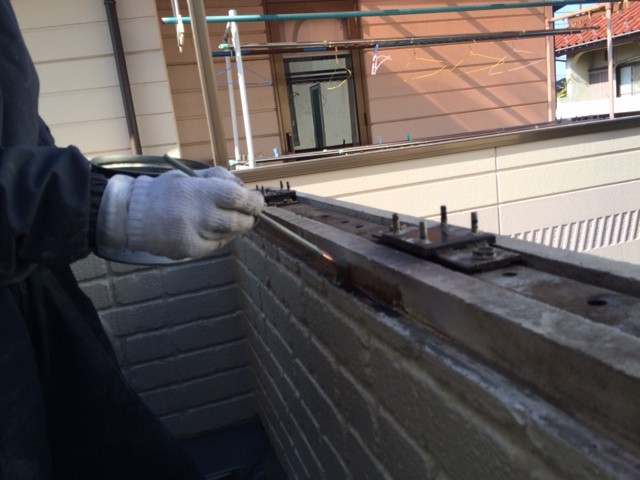 手摺のバーを外して・・・笠木も取っ払ってっていきます‼