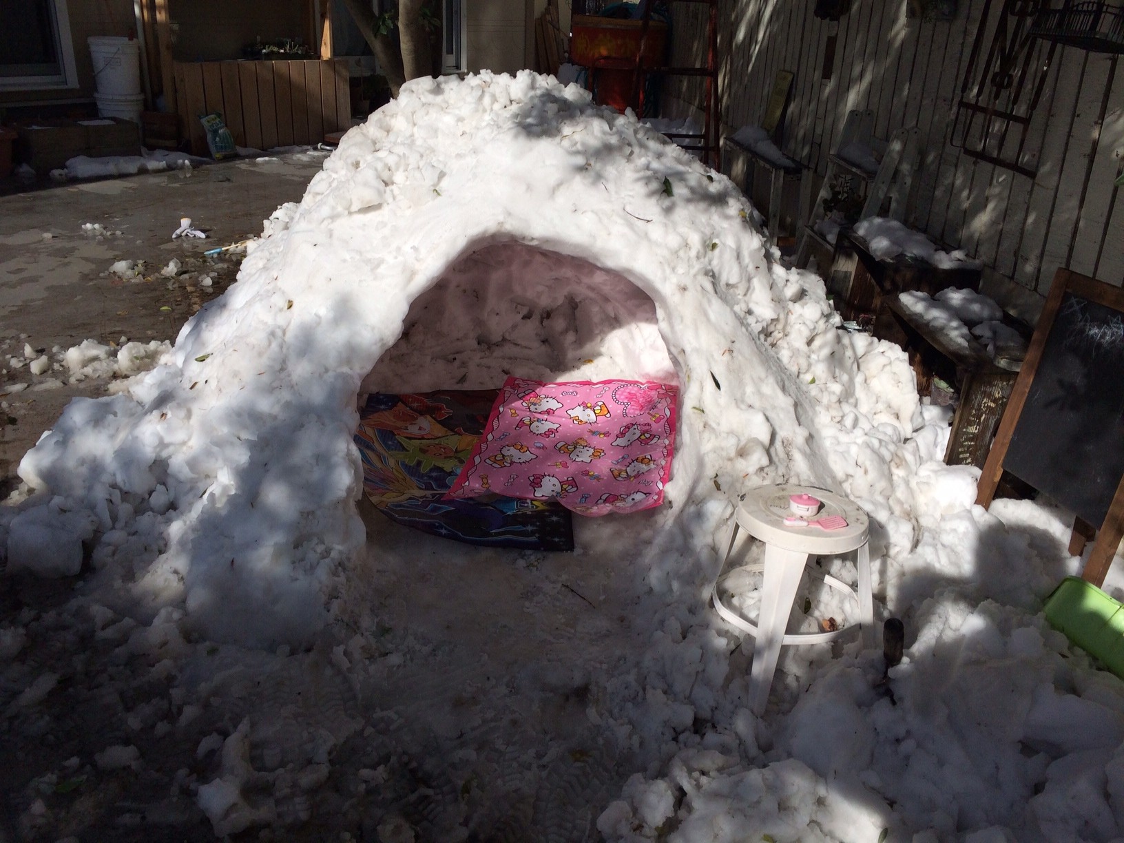 追伸…午後暖かくなってきたので子供たちと庭でかまくらを作ってみました!