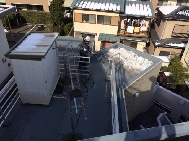 東京都板橋区中台防水工事乗り込み‼ 高圧水洗浄