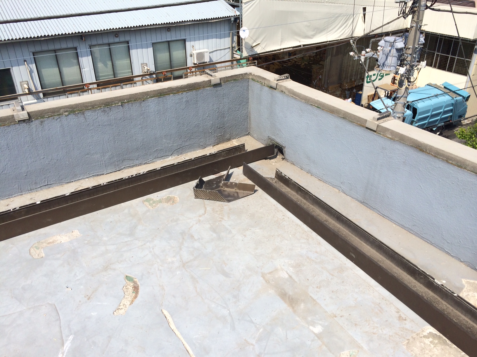既存のアルミ笠木を撤去していきます。(後日、復旧いたしますので…)