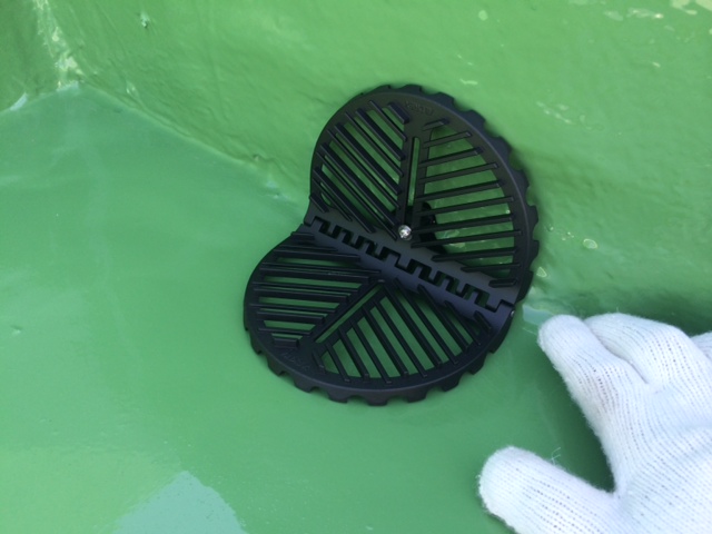 こちらはアルミ製の【ドレンストレーナー】になります。改修用ドレンを設置しましたので、これが付きます(ワンタッチで取り外しができるので、掃除が楽になります)