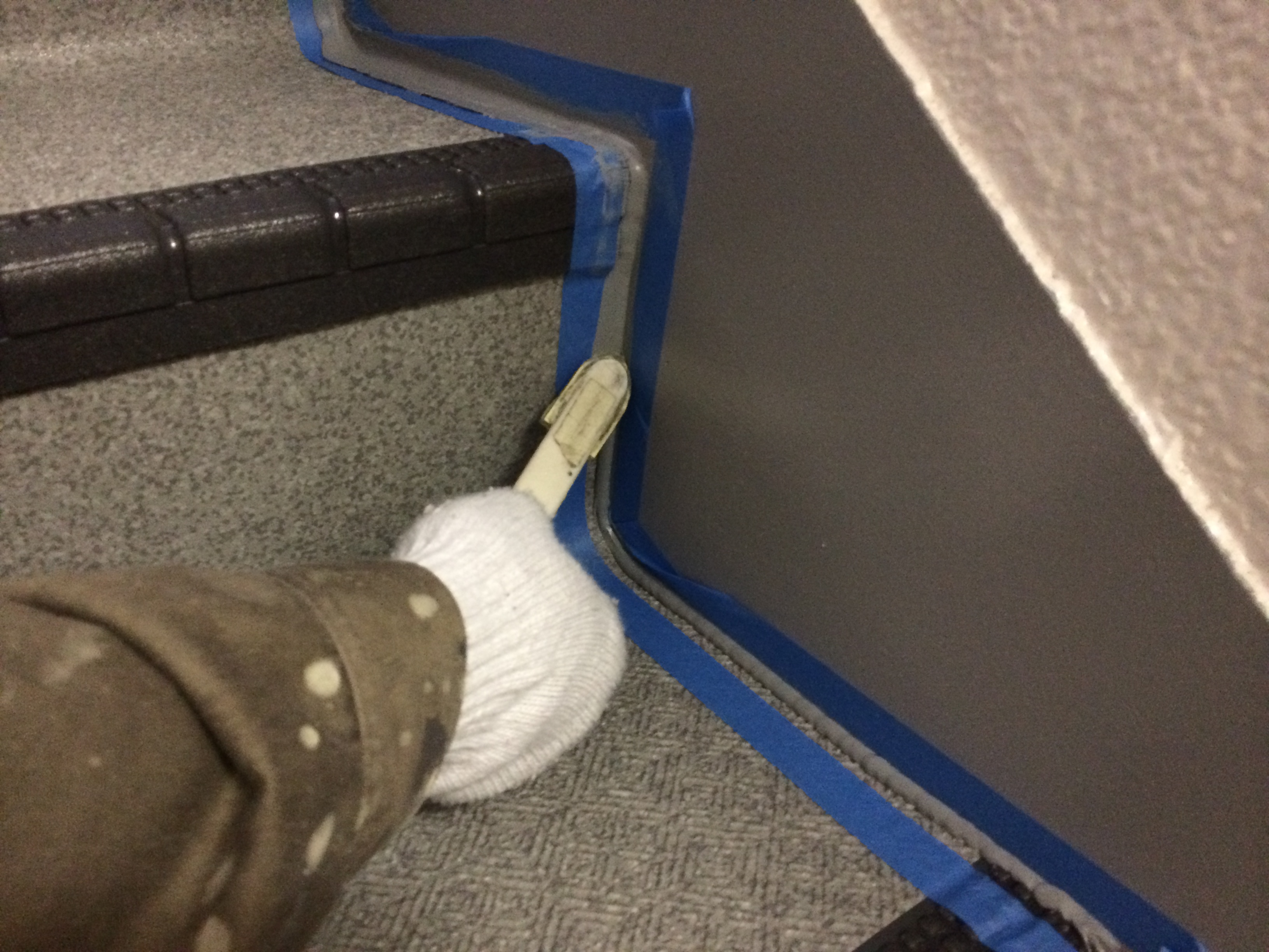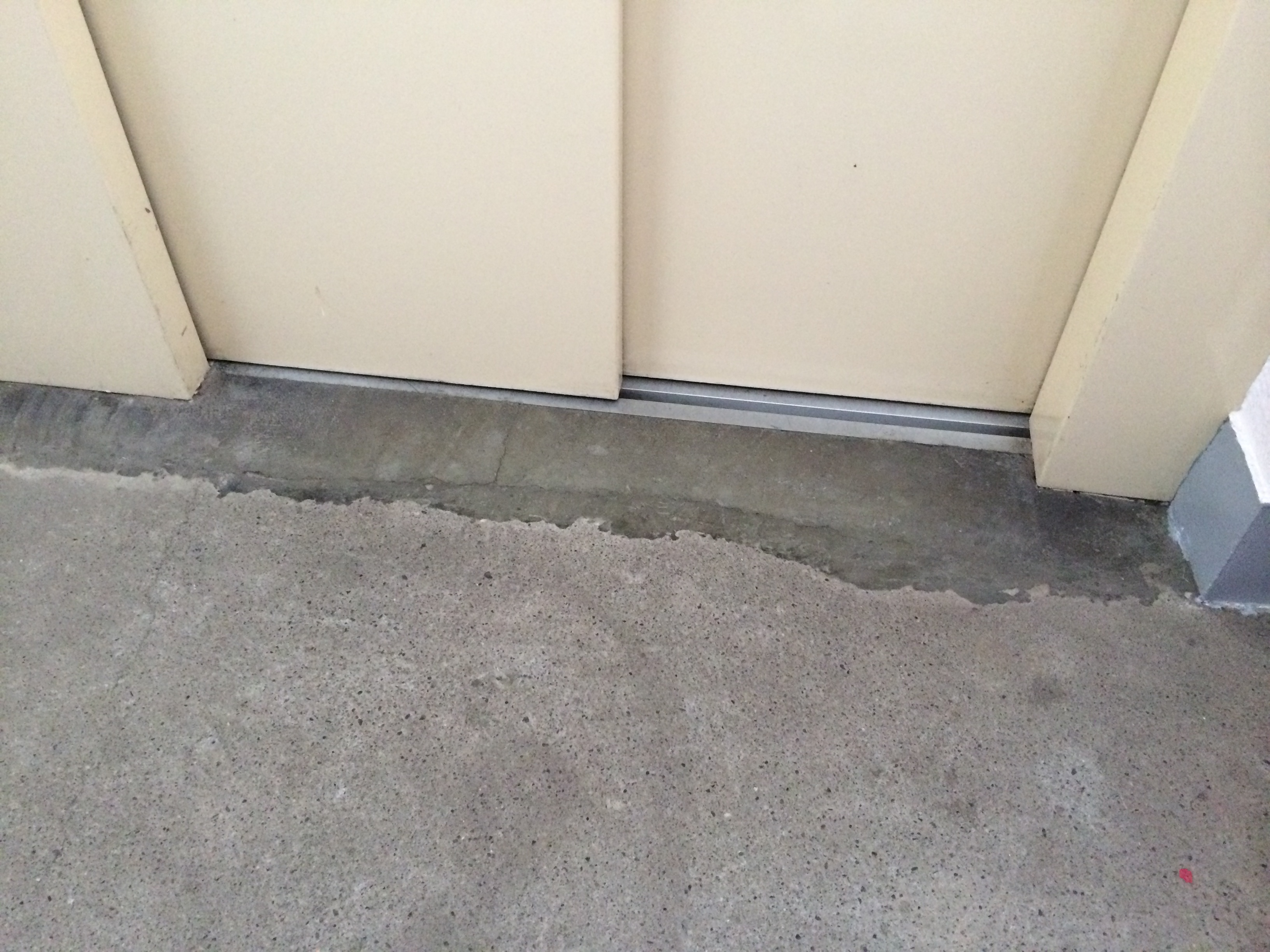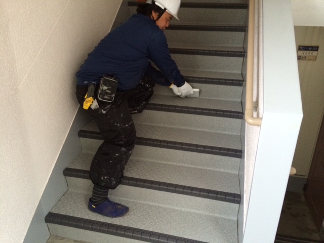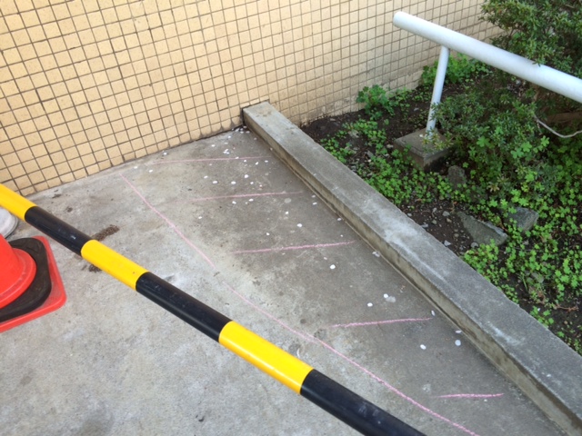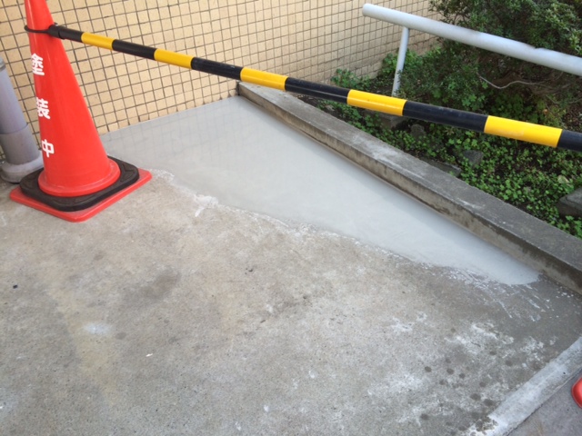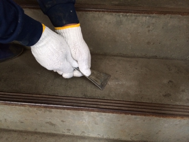いろいろな場所に段差がありますので確認しながらの地道な作業になります。下記の写真は下地が高い為、コンクリートを削って平になるようにしております。