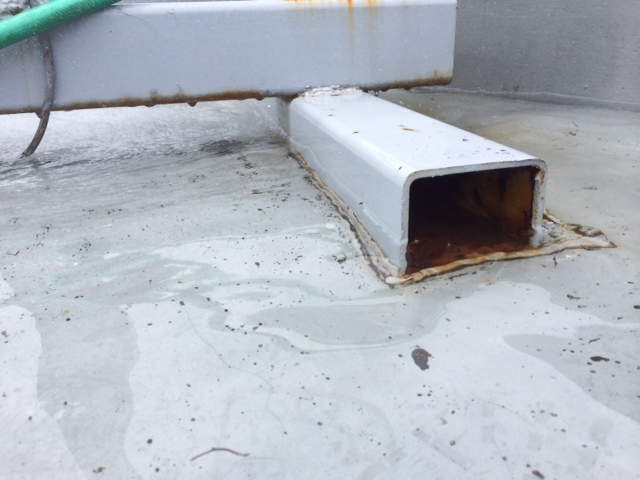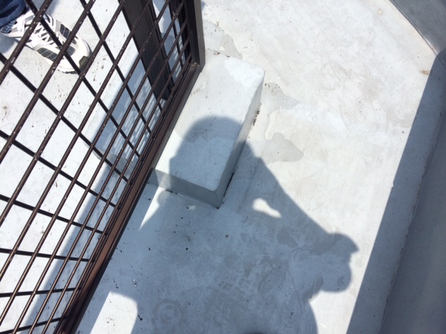 よくあるパターンで手摺基礎を防水しているため、手摺支柱の中に入った水が下階にまわることが多々あります。