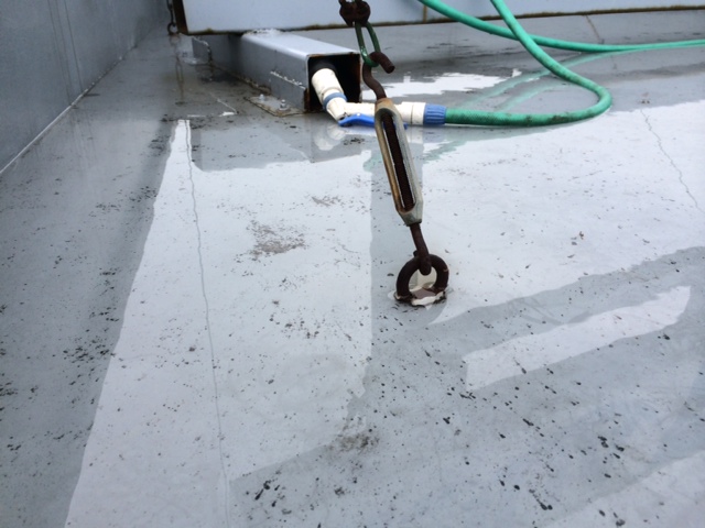 目視ではわからなかった為、屋上の【水張検査】を実施させていただきます。2年前に屋上の防水はしなかったので疑います)