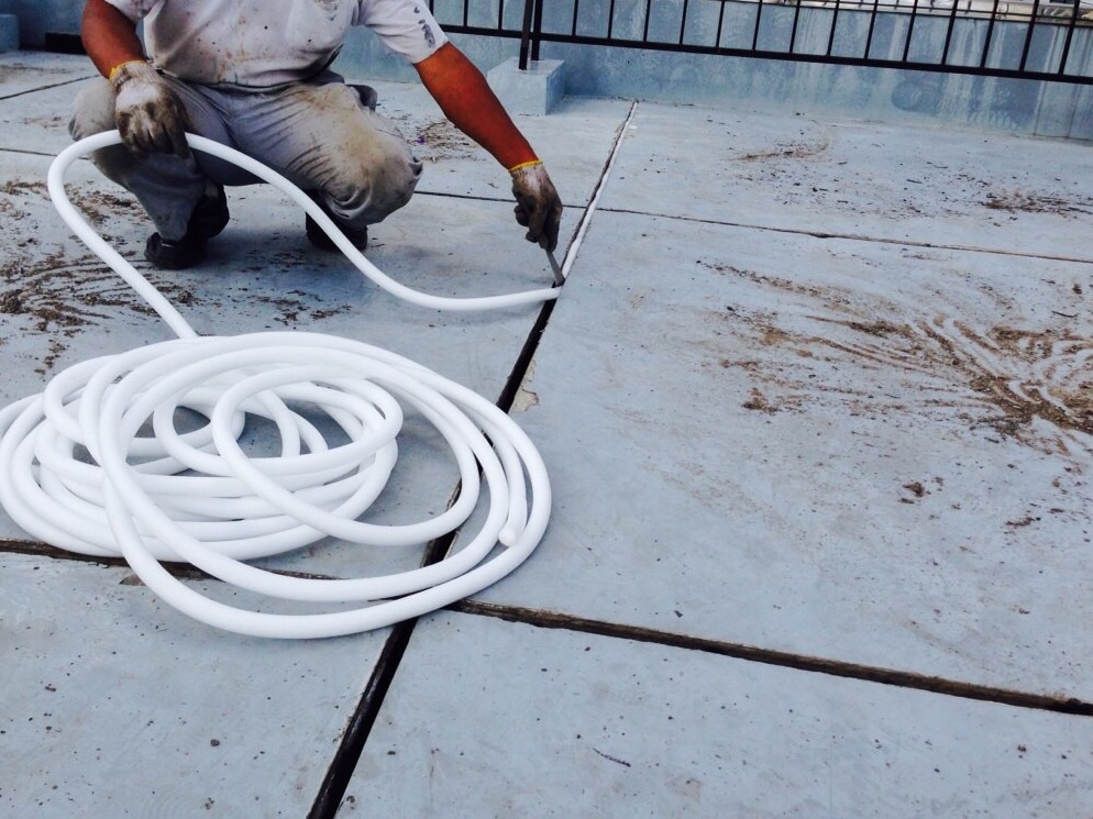 目地に丸棒(発砲ポリエチレン)を詰めます。