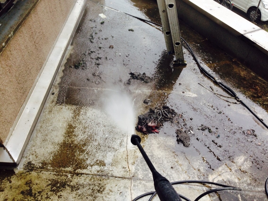 作業前に高圧洗浄にて汚れを落とします