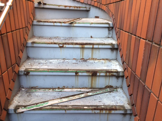 鉄骨階段のシート張り工事になります。