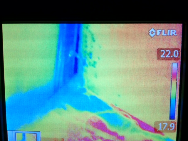 こんな感じで吹き出してきます(青色)さすがサーモグラフィカメラ。