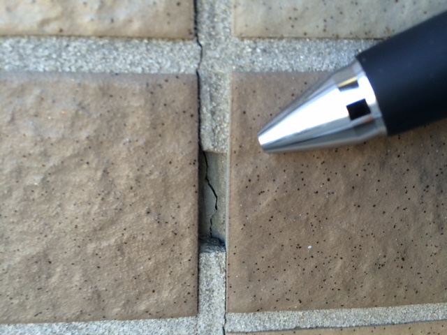 下地のALCのジョイント部でのひび割れ・タイル浮きの状況になります。