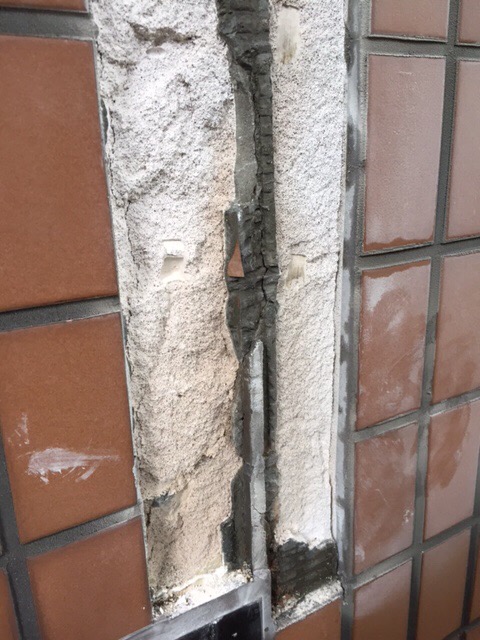 この場所には版間目地があり、伸縮調整目地を設け動きを緩和したりするのですが..いろいろ現場諸事情がある模様で。