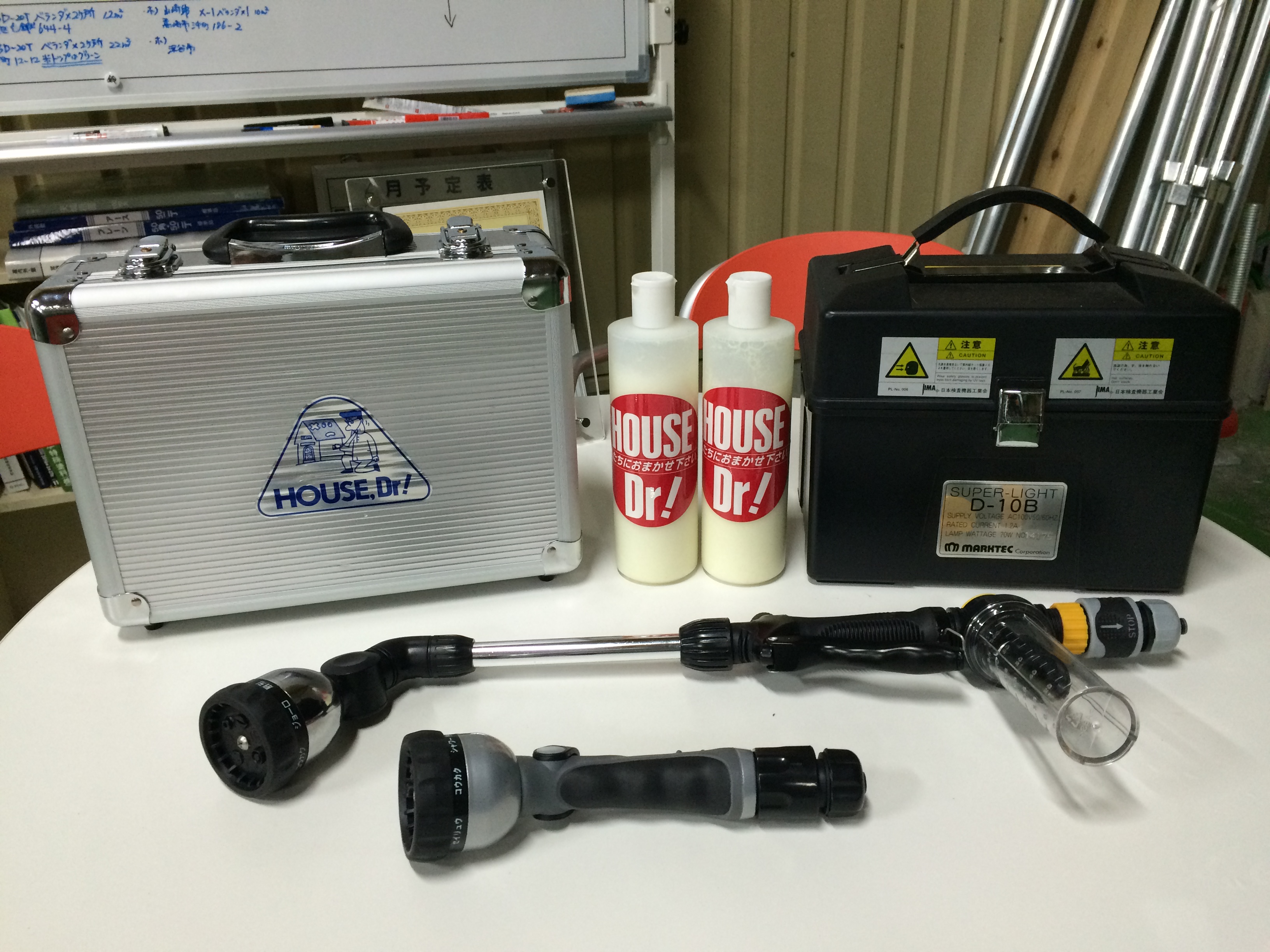 雨水が侵入する所から紫外線に反応して発光する専用の検査液を流し込み紫外線ライトで照らして侵入口を特定します。『光らせて雨漏りをしている箇所を特定し、原因究明につなげます』