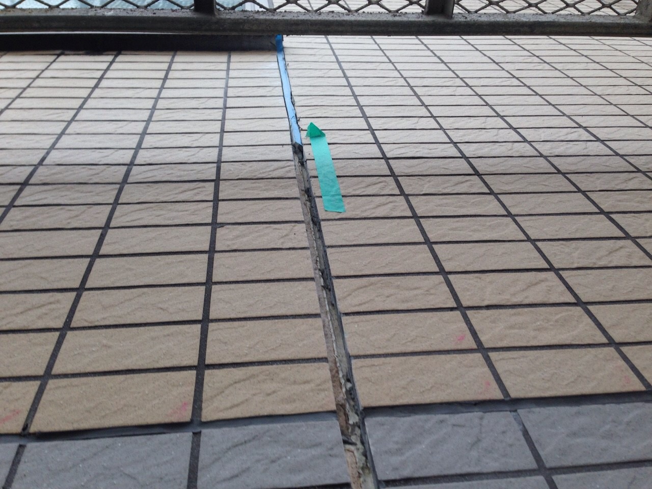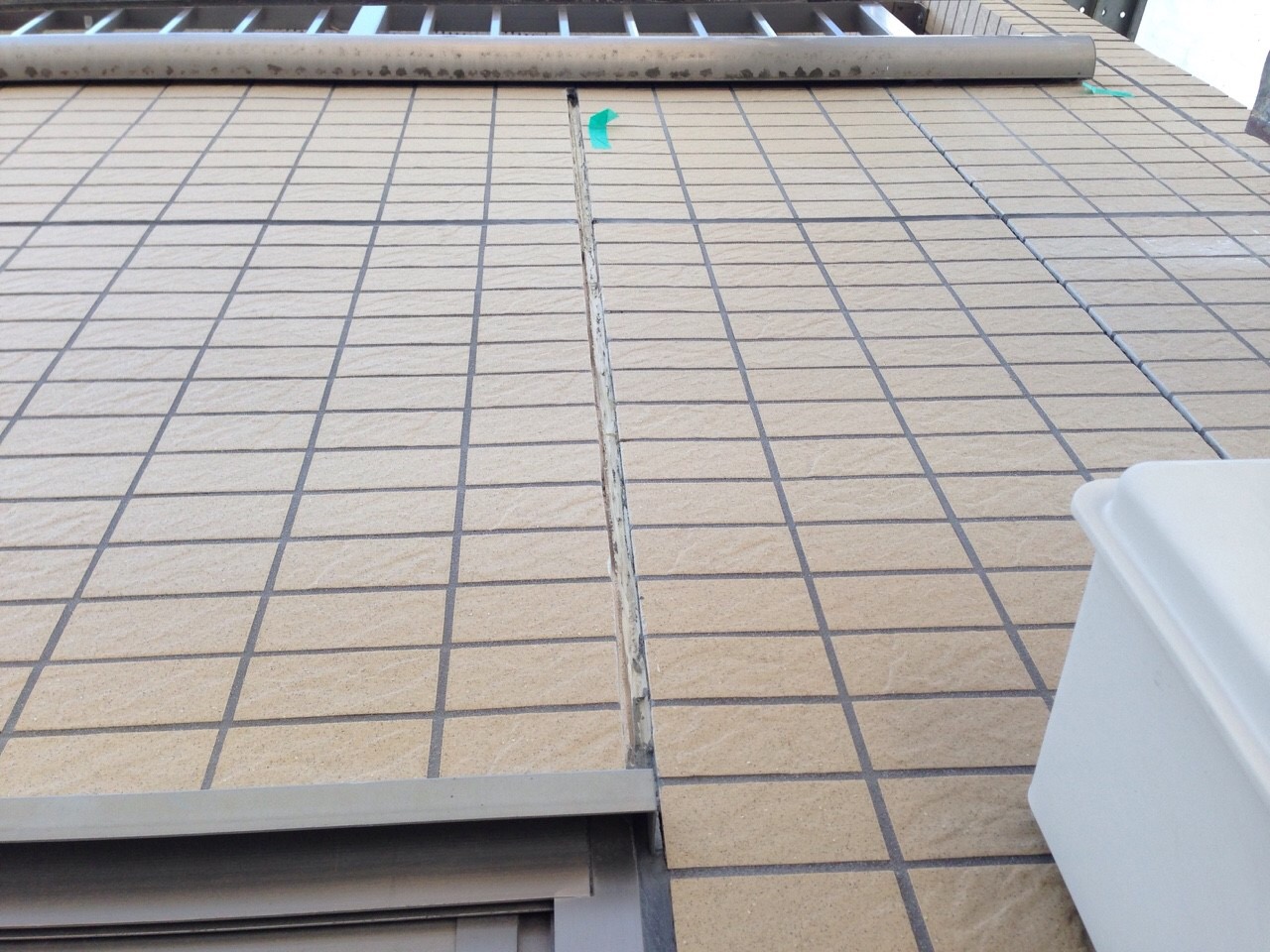 版間目地がぶつかって欠損状態に……タイルも剥がれる……