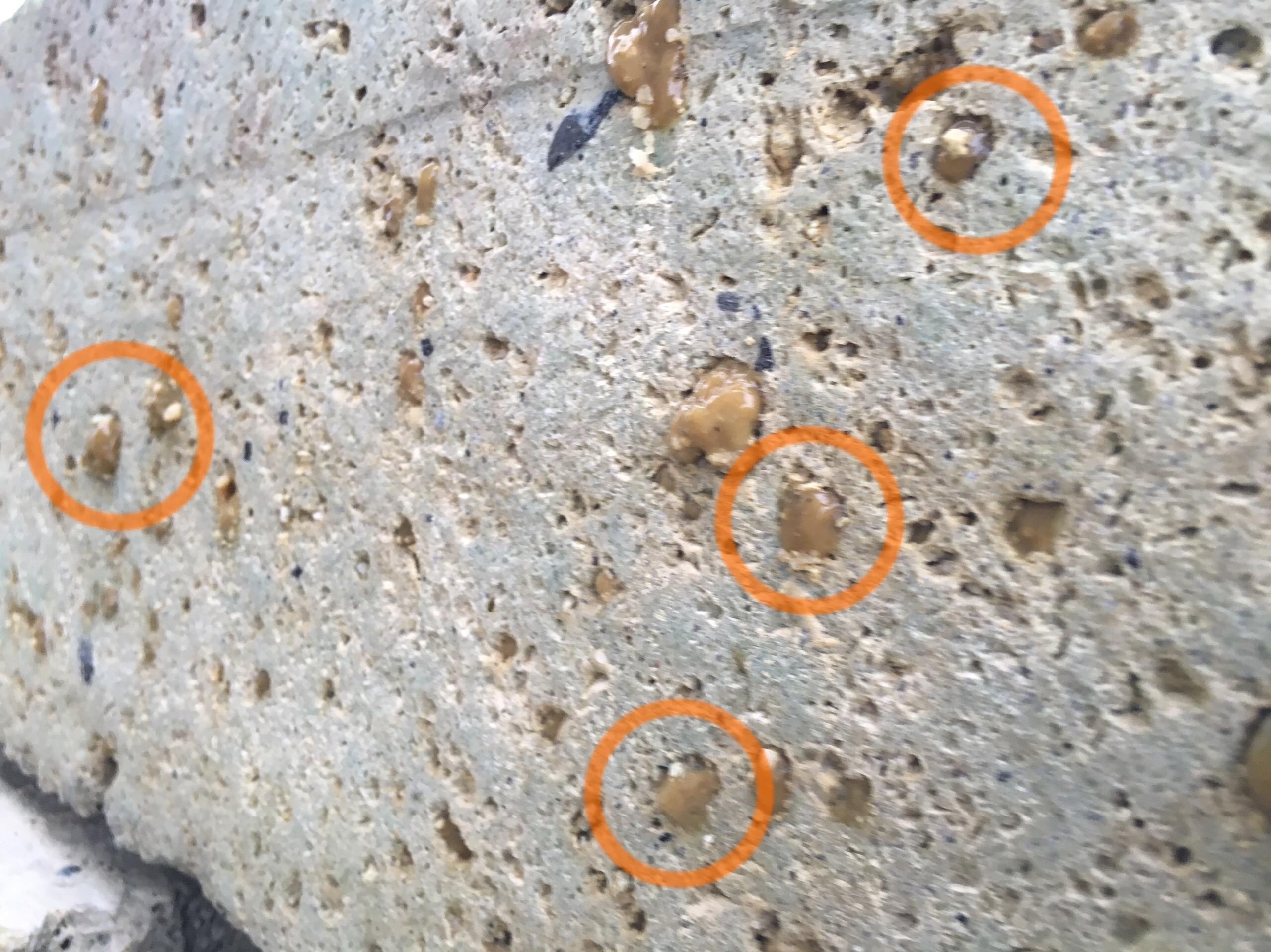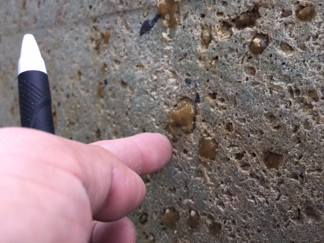 石表面に穴がところどころ…これはミソと呼ばれる物がとれた痕だそうです。