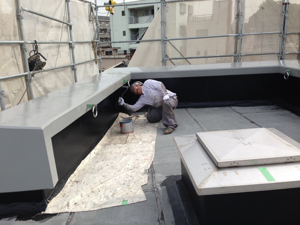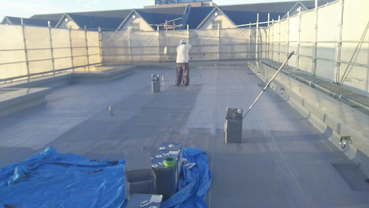 防水層の保護の為のトップコート塗布。