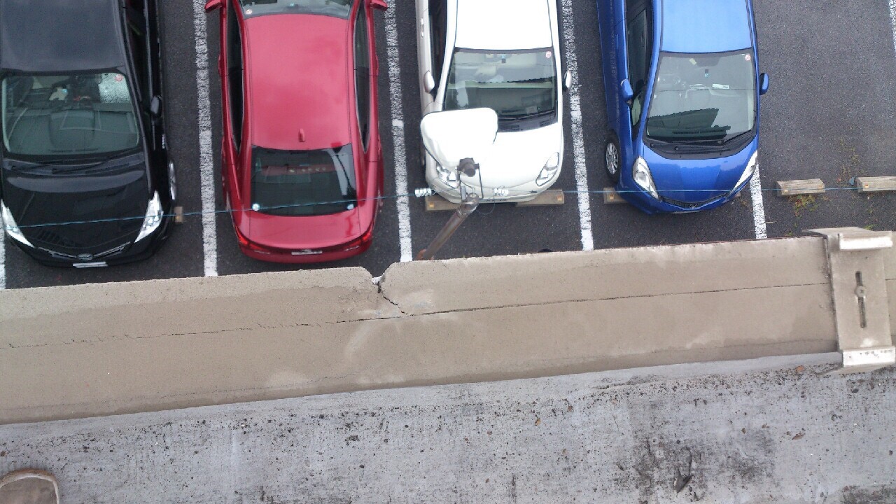 鉄骨ALC造の為このように60cmピッチで隙間、ひび割れがあり。。これでは吹き込む様な雨風の時はタマランデス。。。。