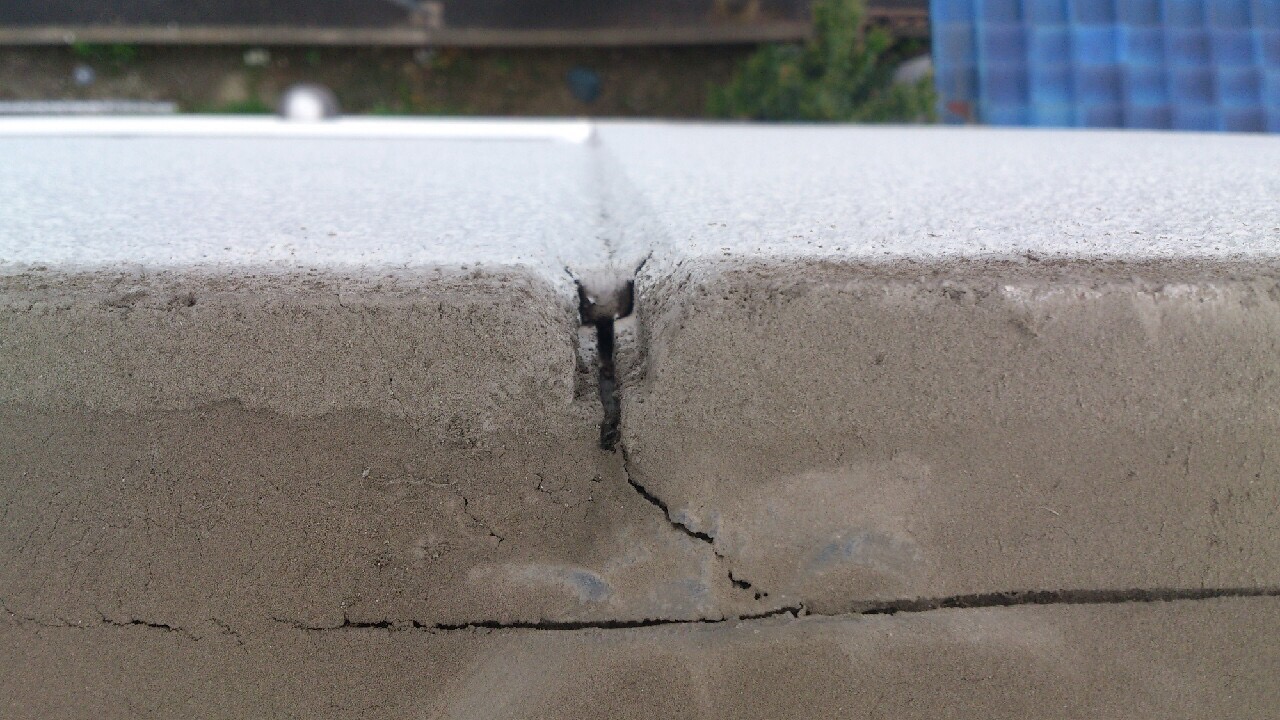 外してみると、やはりアルミ笠木内に隠れている場所で隙間が多々あり。。。