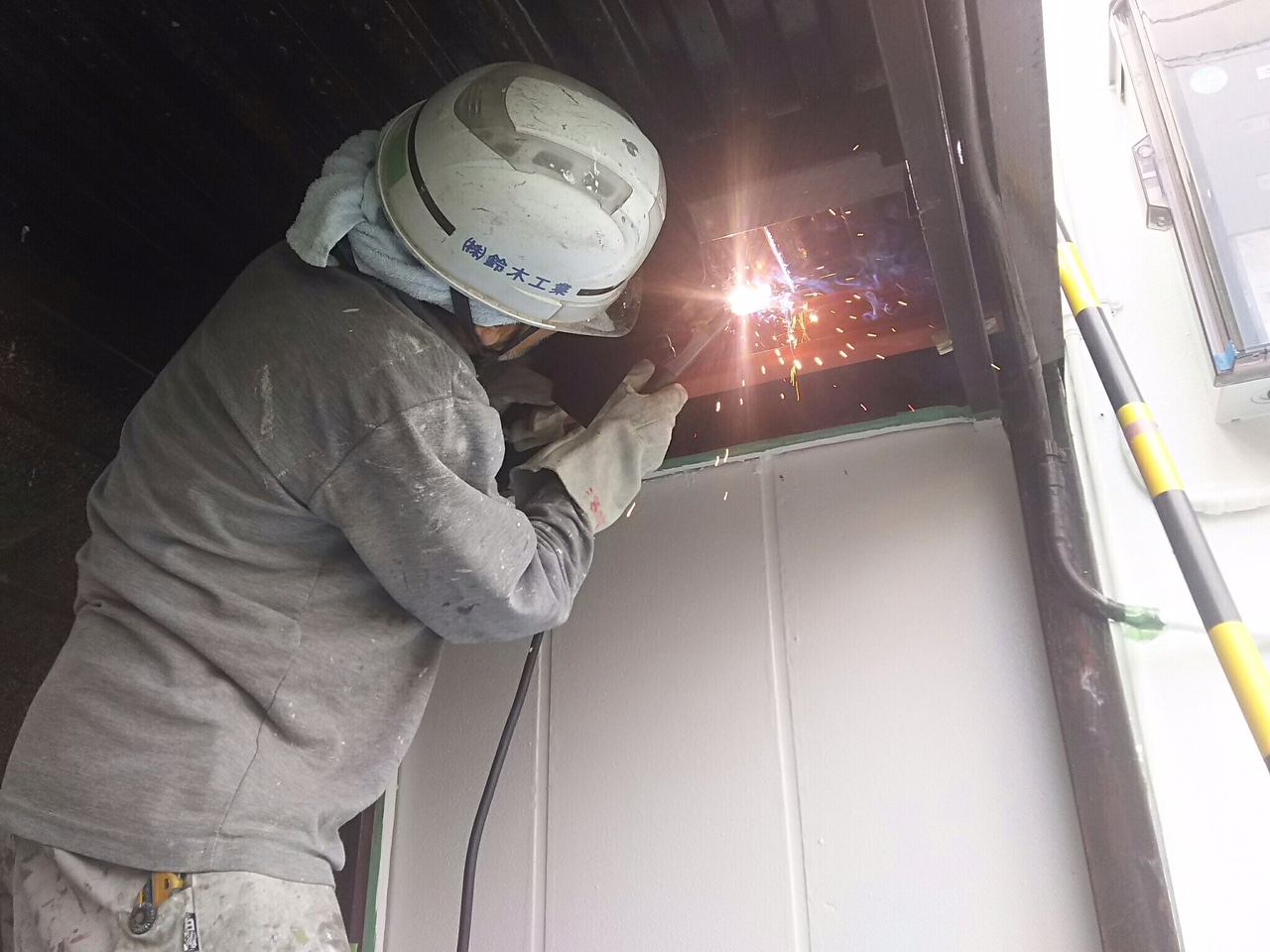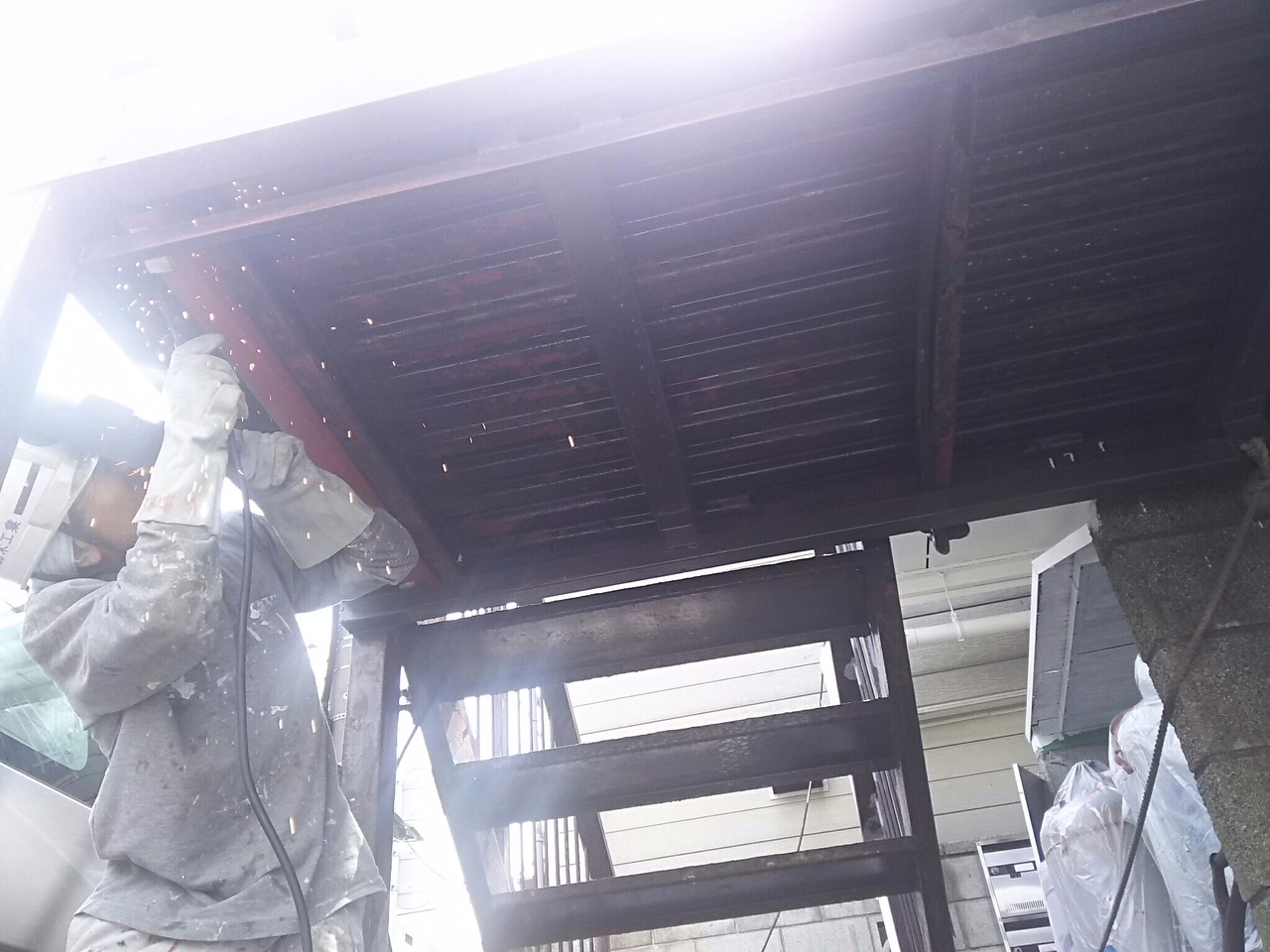 鉄骨の腐食箇所。錆を除去し、補強。