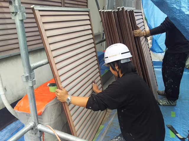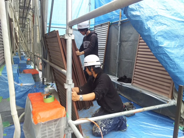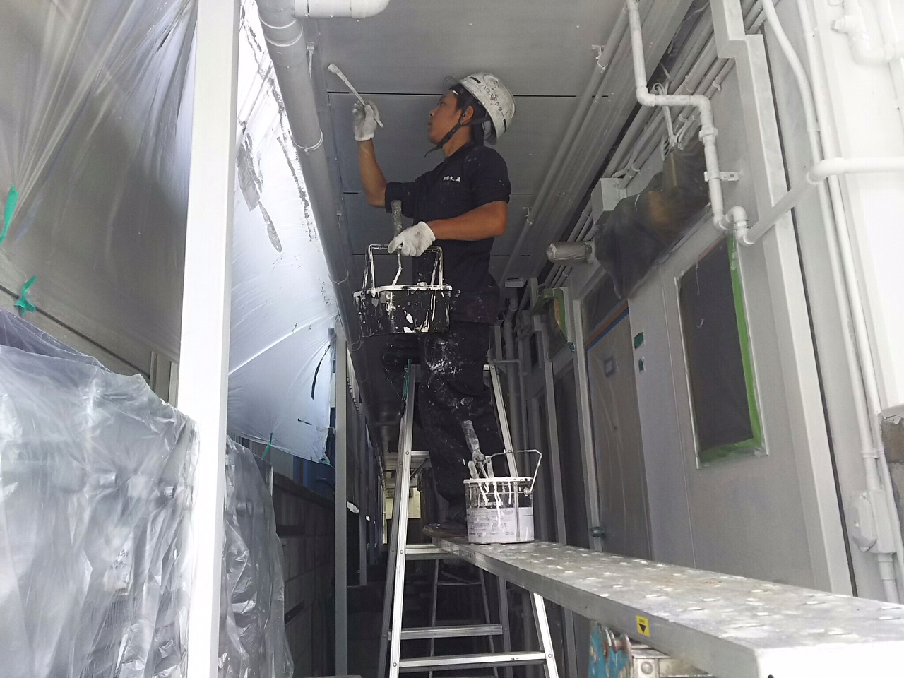 現場で塗装吹き付けブースを作っての吹き付け作業〜〜