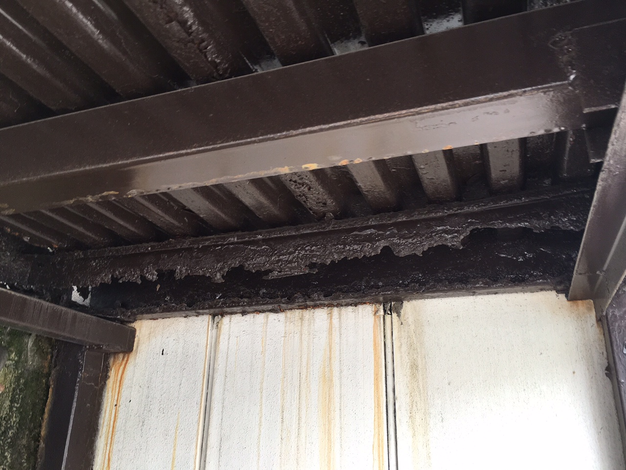 鉄骨部分の支柱部にもやはり水が。。。。