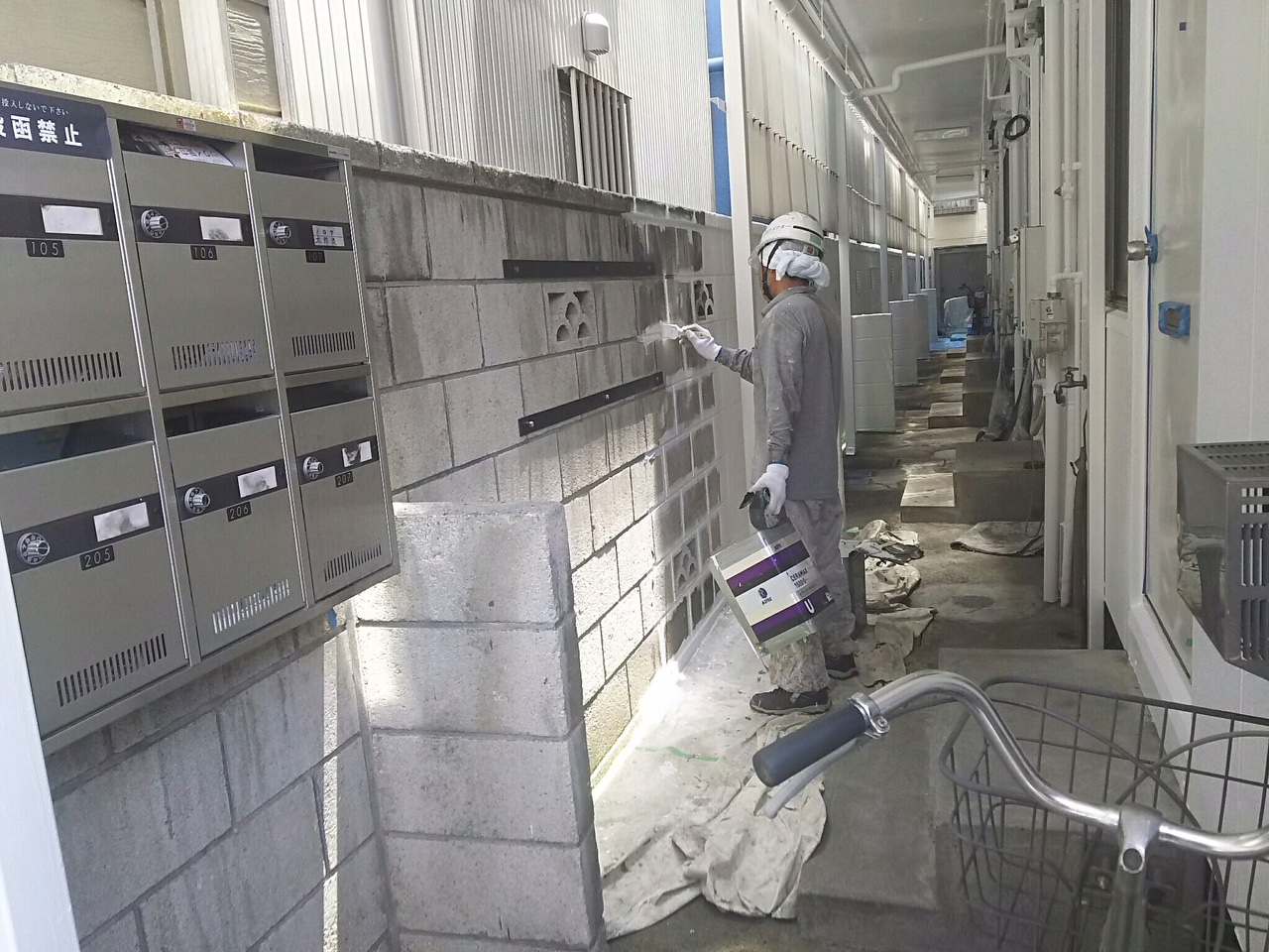 「N○○大規模修繕工事」アステックペイント超低汚染リファインで丹念に塗り上げます!東京都足立区西新井の集合住宅の外装リフォームを行っております。