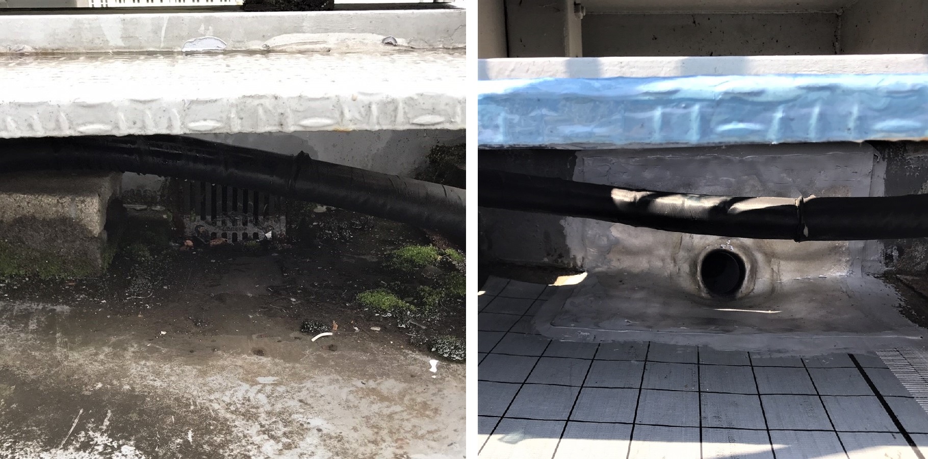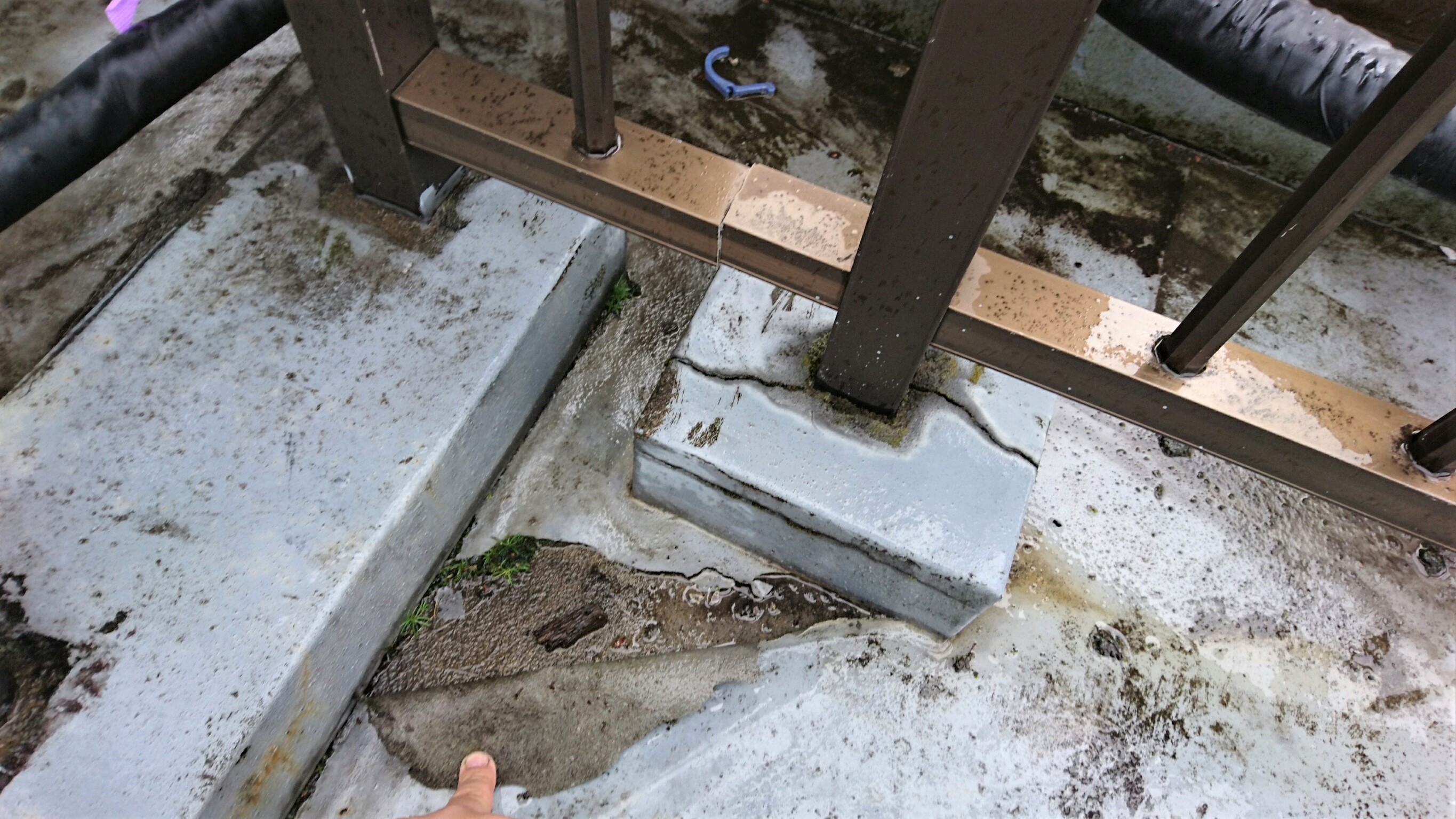 既存防水シートが劣化し、コンクリートが脆くなっておりました。