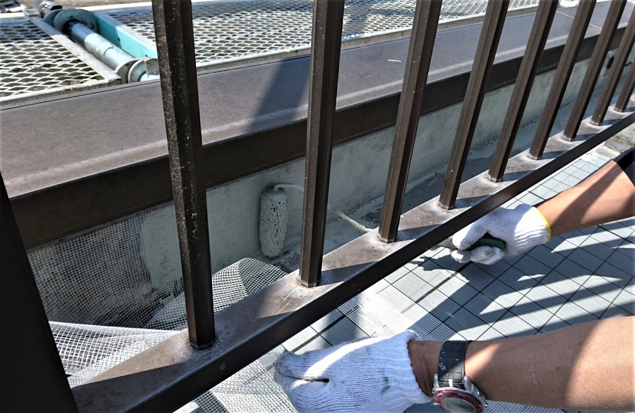 ソーラーパネルの下も ぬりぬり… うんしょっと(><;)