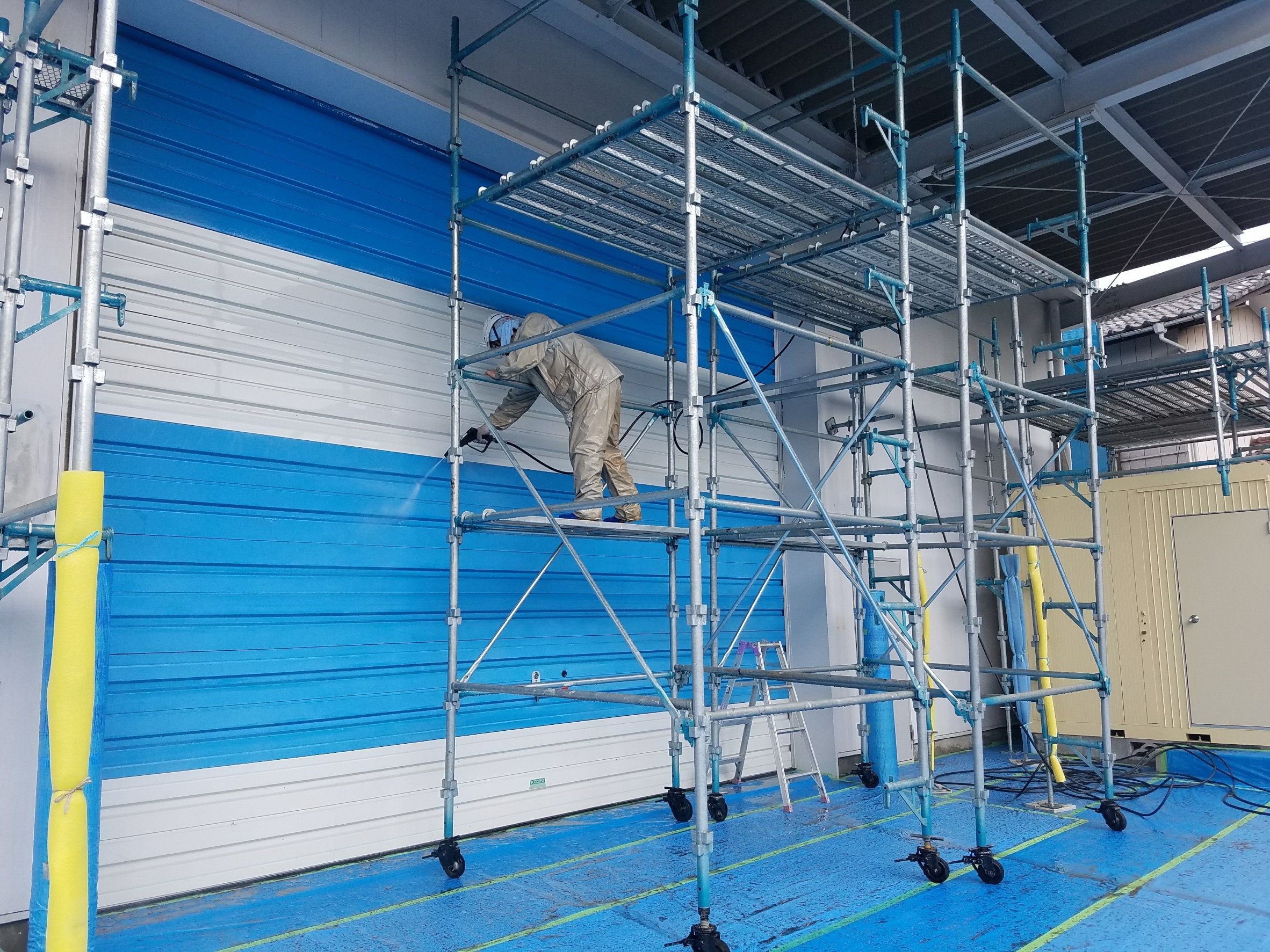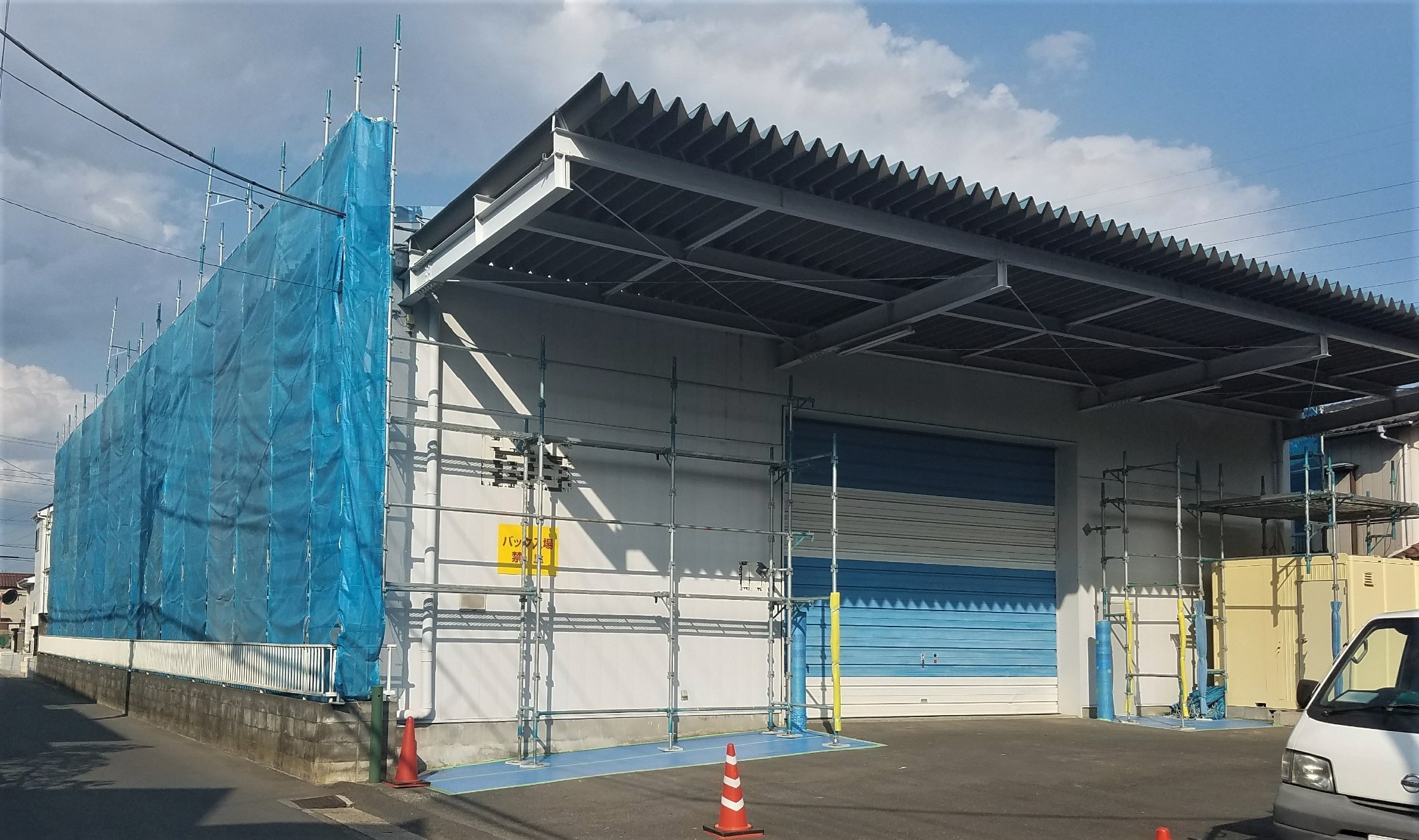 八潮市 大曽根「Y様 倉庫」の外壁塗装工事が始まりました!