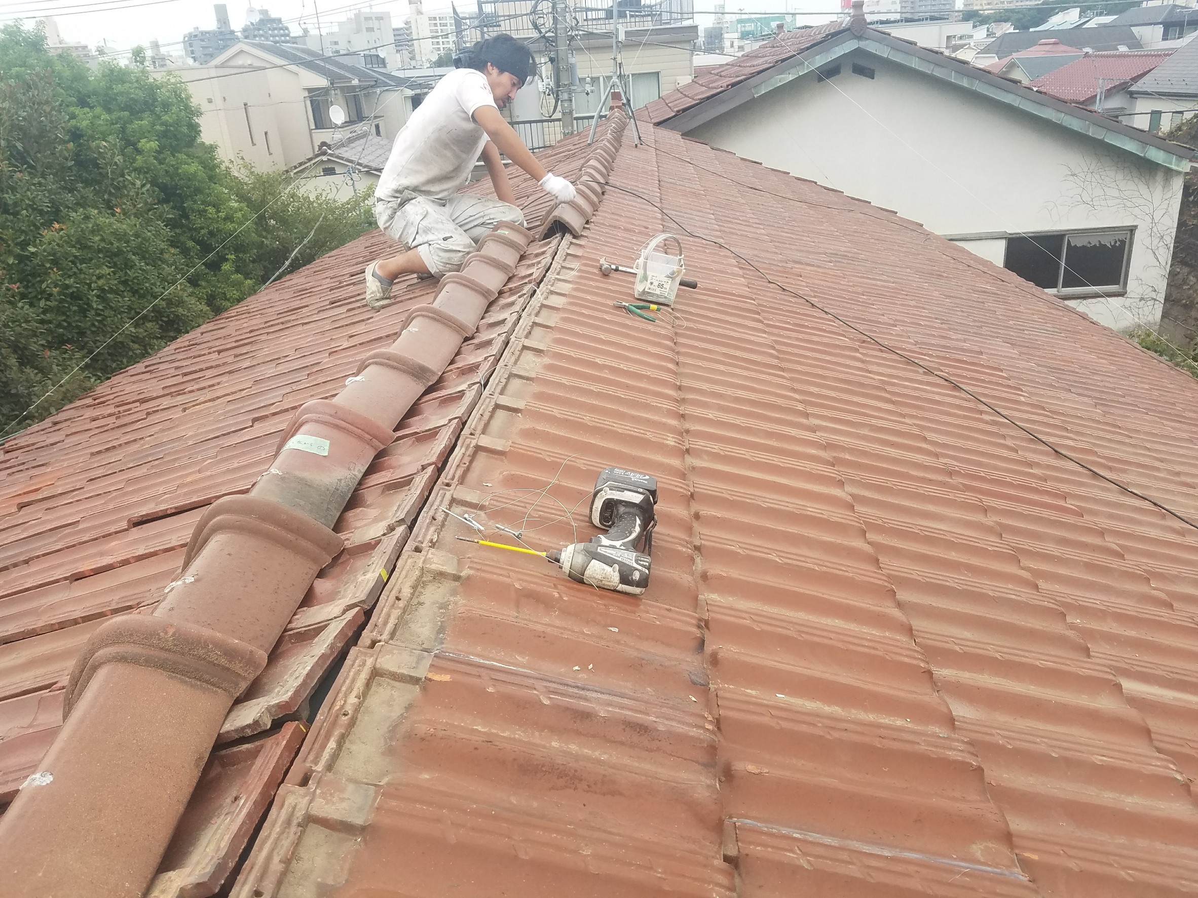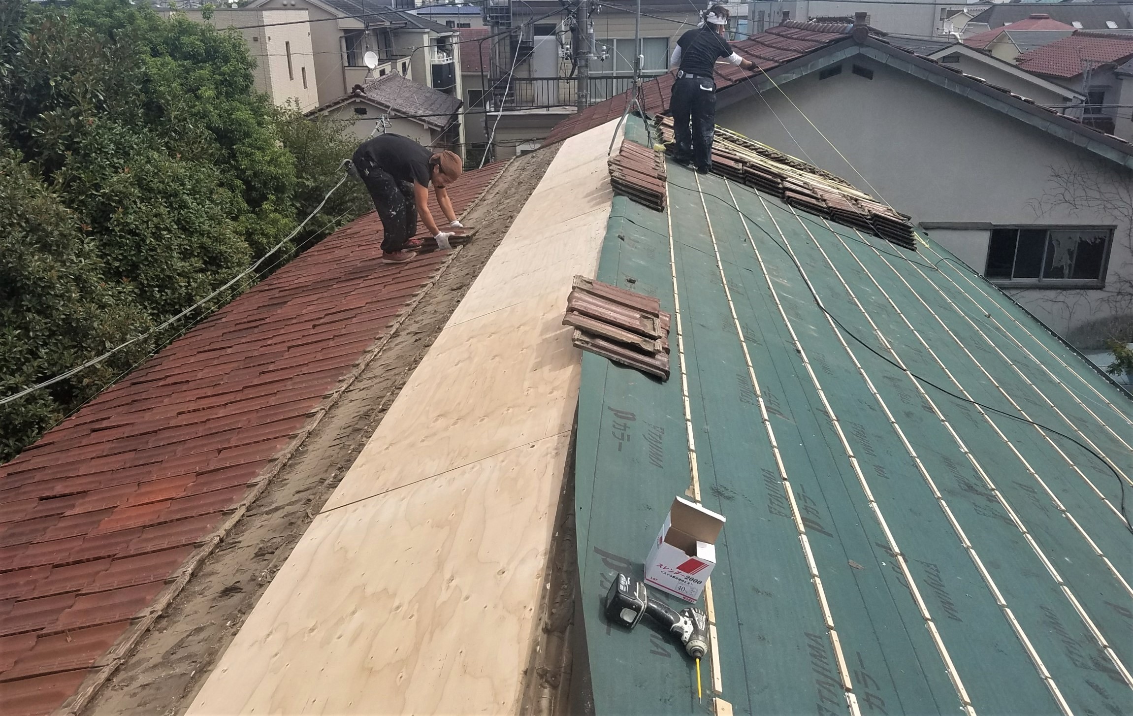 前回に引き続き、反対側の屋根も瓦をはずし、下地を作っていきます!