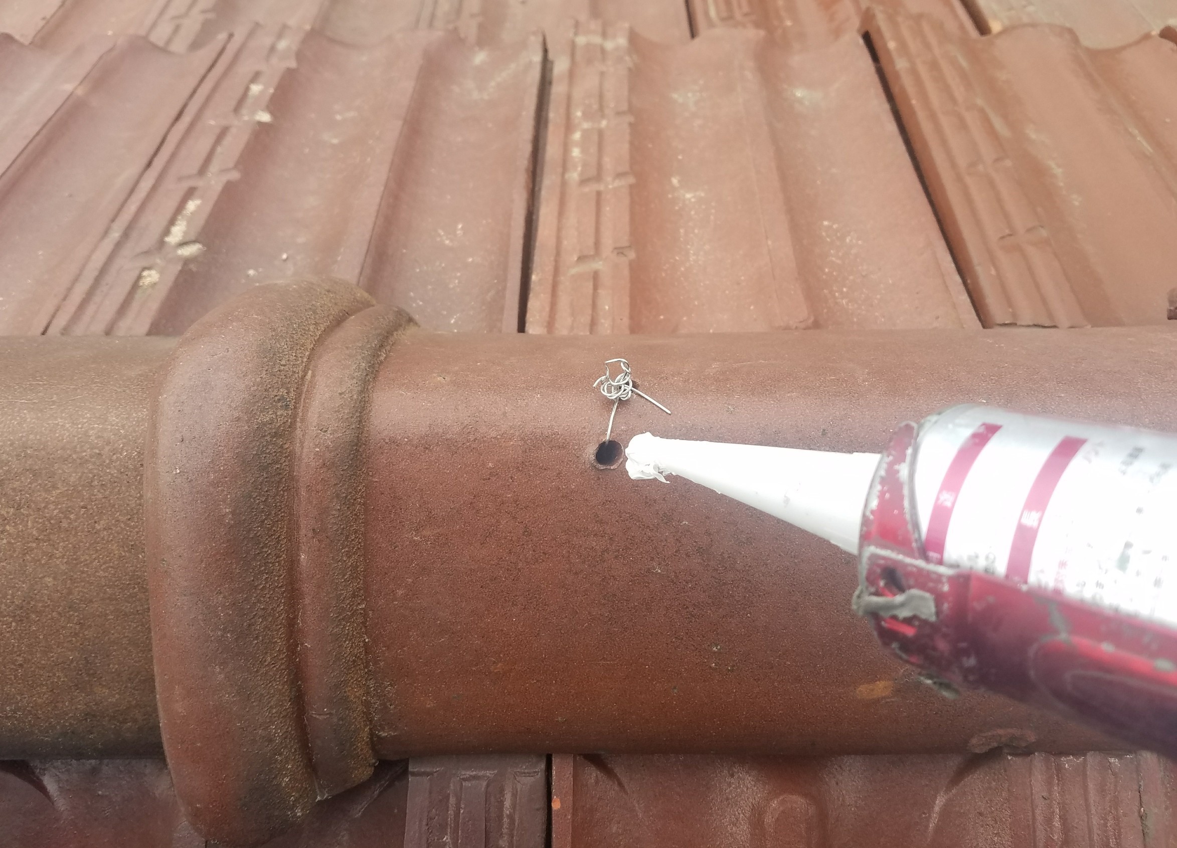 釘穴を埋めて、雨水の侵入をシャットアウトしております(*^^)v