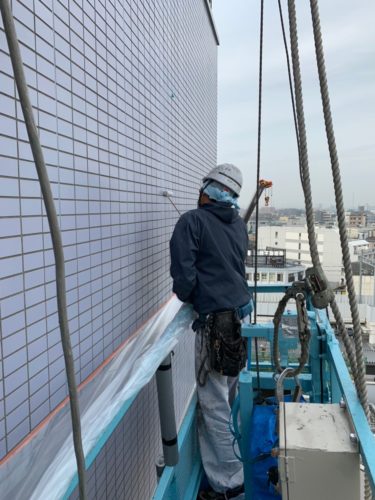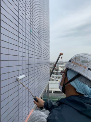 足立区にてビルのタイル面防水工事・タイル剥落予防を行っております!外壁の御相談はアシストリフォームへ!