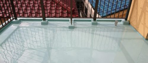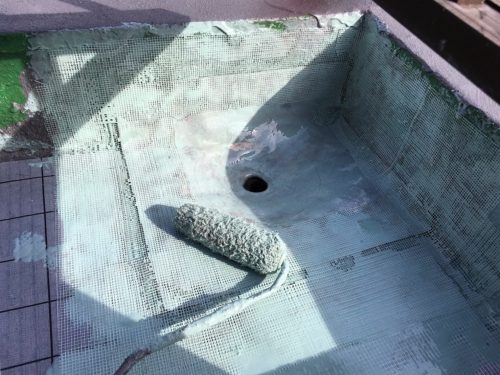 立ち上がり部にメッシュを巻き込みながら塗料を塗布することで、補強になります!
