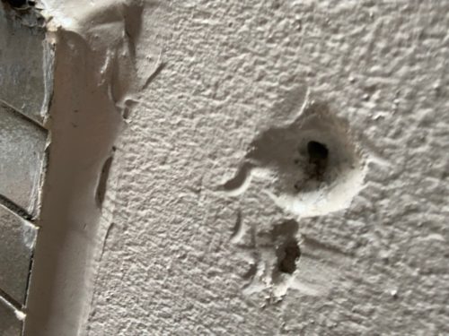 外壁に穴の開いたままの箇所がありました。