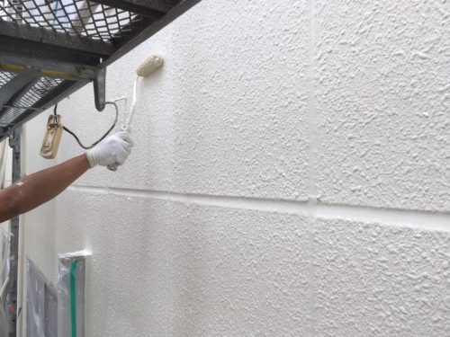 コーキングやクラック補修も済み、外壁の塗装を行いました!