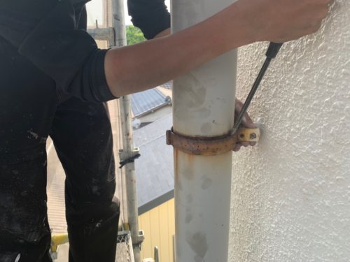 樋バンドをステンレス製のものに交換し、