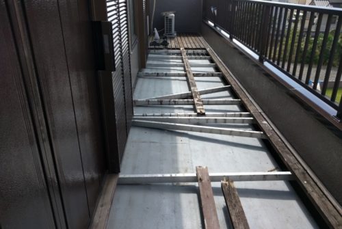 ウッドデッキの下で雨漏りが生じておりました。