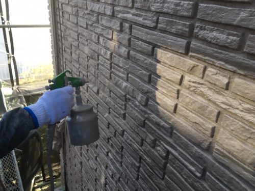 外壁の吹き付け作業に入りました!