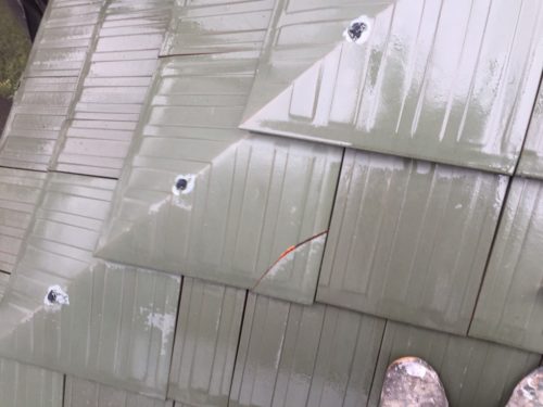 屋根瓦には ひび割れがありました
