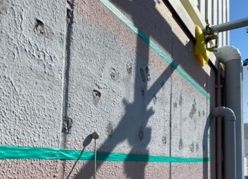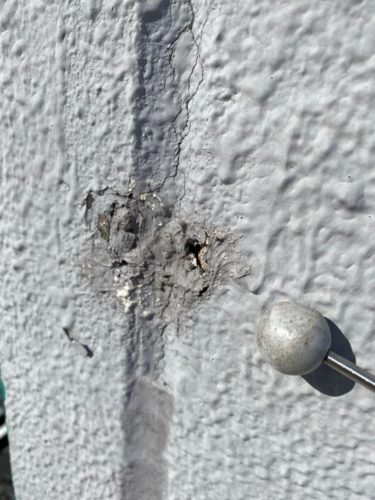 既存の外壁は、穴やクラックがあり、雨漏りが生じておりました。