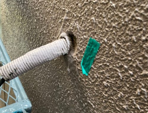 室外機のホース穴を埋める粘土も 劣化の心配のある個所です。